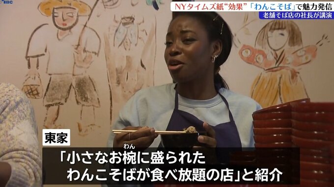 その中で東家は「小さなお椀に盛られたわんこそばが食べ放題の店」と紹介され、多くの外国人観光客が訪れるようになりました。