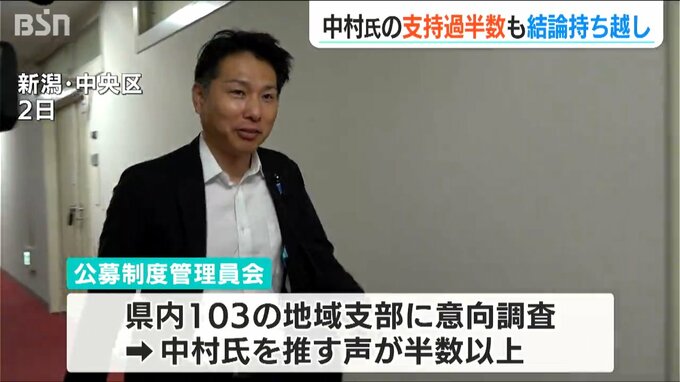 2日に開かれた委員会では県内103の地域支部への意向調査で、中村さんを推す声は半数以上だったことが分かりました。