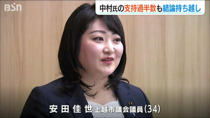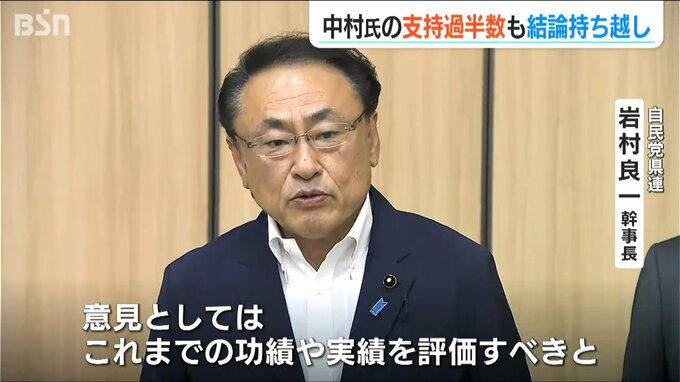 【自民党新潟県連 岩村良一 幹事長】「意見としてはこれまでの功績や実績を評価すべきと、その内容について皆さんが持っている考え方を巡り協議が続いた。来週また開きましょうと」