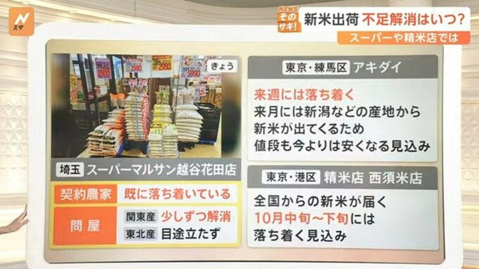 来週には落ち着く。来月には新潟などの産地から新米が出てくるため、値段も今よりは安くなる見込み