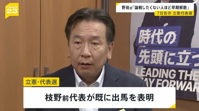 代表選には枝野氏が既に出馬を表明、江田憲司氏と吉田晴美氏も立候補を模索しています。