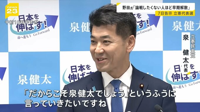 「小泉さんが総裁になるなら『だからこそ泉健太でしょう』というふうに言っていきたいですね。負けませんよ。むしろ勝たせていただきます」