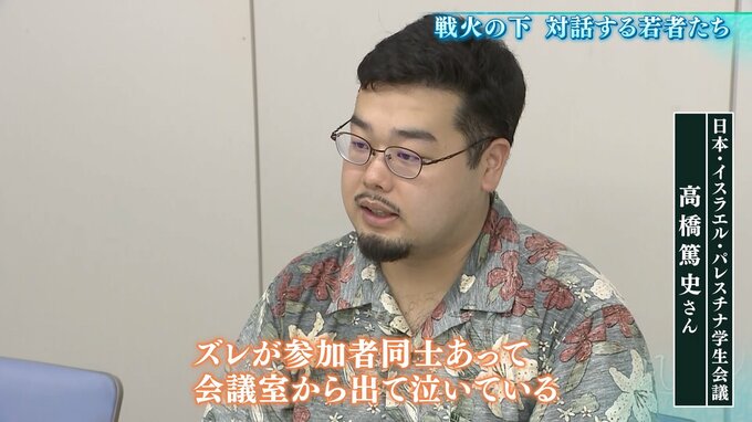 学生団体の高橋さん「(戦闘が始まった)10月7日以降、どういう状況になるのかというプレゼンテーションの機会があったけど、ズレが参加者同士あって、会議室から出て泣いている」