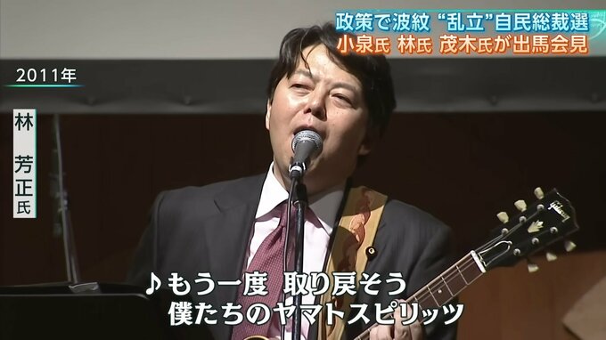 議員仲間とのバンド活動でオリジナル曲を披露しているのは、林官房長官。