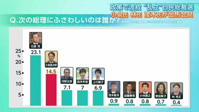 総理にふさわしい人を問う世論調査では、石破氏と共に突出した人気を誇ります。