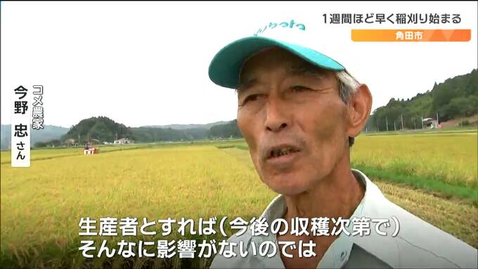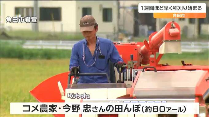 全国的に米不足が問題となっていますが、宮城県南のコメどころ、角田市では新米の稲刈りが、例年より1週間ほど早く始まりました。