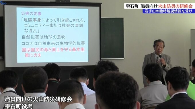 岩手山で火山活動の活発化が観測されたことを受けて、山麓にある岩手県雫石町では職員向けの火山防災の研修会が開かれました。