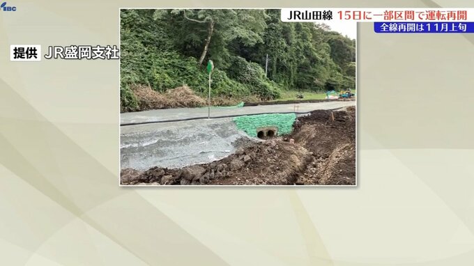 8月の大雨被害で運転を見合わせていたJR山田線の一部区間が、9月15日に再開する見込みとなりました。全線での運転再開は11月上旬の予定です。JR山田線は8月27日の大雨で線路設備の流出をはじめ、倒木や泥が流れ込…