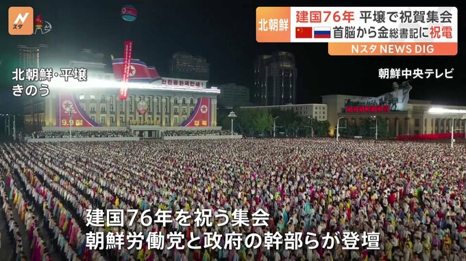 北朝鮮はきょう、建国76年を迎えました。きのう、平壌で祝賀集会が開かれたほか、中国の習近平国家主席とロシアのプーチン大統領からは祝電が送られました。北朝鮮メディアによりますと、きのう、平壌で建国76年を…