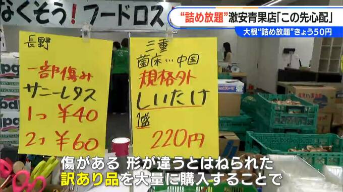 「当店は『なくそう!フードロス!』を掲げていて、傷がある、形が違うとはねられた訳あり品を大量に購入することで、その分安く提供できる」