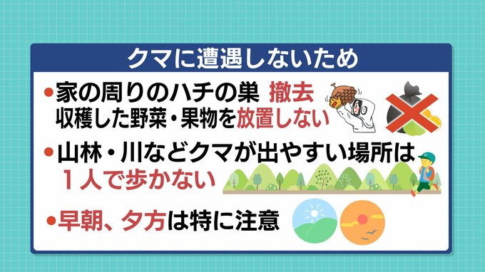 早朝や夕方などクマが活発になる時間帯は特に注意が必要です。