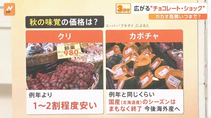 都内スーパー「アキダイ」によると、▼例年より栗が1割~2割程度、安いそうです。剥くのは大変ですが美味しいので、ご飯に混ぜて食べたいです。