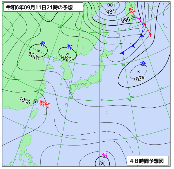 今後、勢力を強め、11日6時までには台風に発達する見込みで、中心の気圧は998ヘクトパスカル、中心付近の最大風速は18メートル、最大瞬間風速は25メートルとなる予想です。