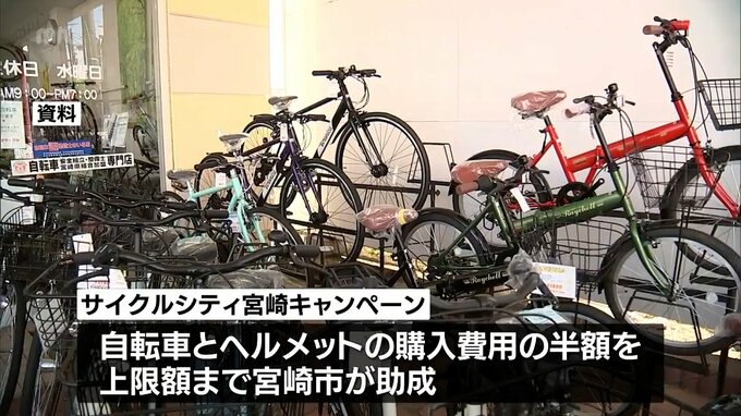 自転車の購入費用の半額を助成する宮崎市の事業について、市は、上限額に達したとして、申請手続きを終了したと発表しました。この事業は自転車の利用を促そうと、宮崎市が自転車とヘルメットの購入費用の半額を助…