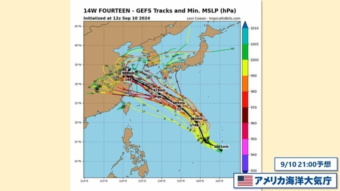 アメリカ予報機関 台風13号は沖縄方面へ 沖縄周辺で発達ピークに