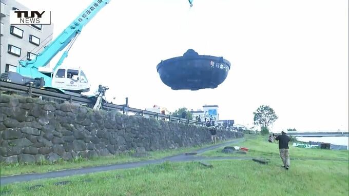 そして、河川敷に着くと、クレーン車で吊り上げては、トラックに載せる作業を繰り返し、かまどに向け少しずつ移動させました。