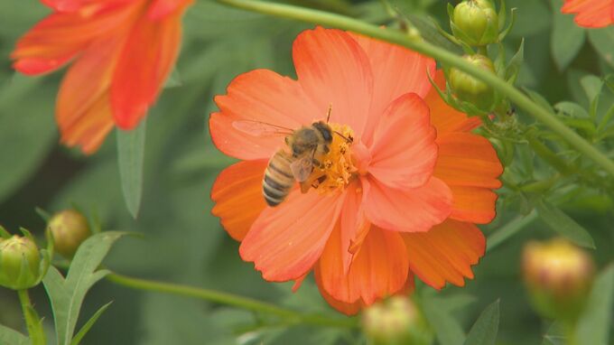厳しい残暑が続く中、安曇野市では、秋の訪れを告げるキバナコスモスが見ごろを迎えています。里山のふもと一面に広がるオレンジのじゅうたん。安曇野市堀金(ほりがね)の国営アルプスあづみの公園では、およそ2.…