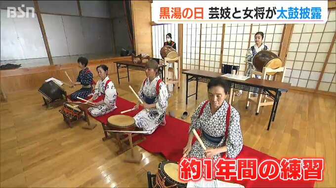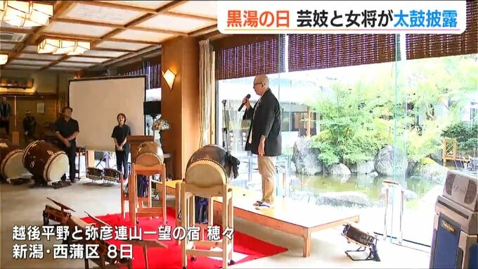この日のイベントで岩室芸妓と岩室温泉の女将が初めて和太鼓を披露しました。音色に込めた思いとは。