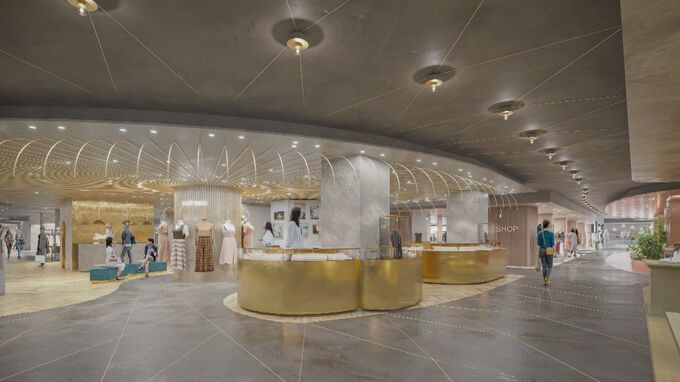 シャンデリアが象徴的な本館3階のブティック。そのほかのフロアも照明が特徴的で高級感あふれる空間に。