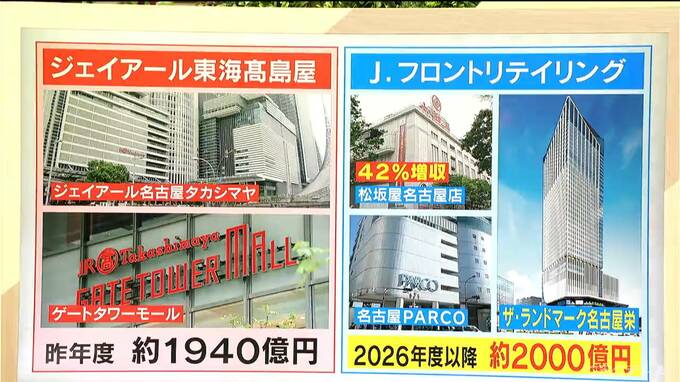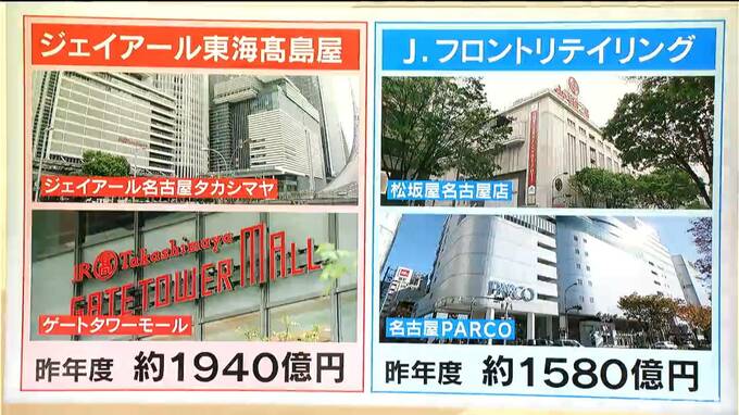 名古屋駅では、ジェイアール名古屋タカシマヤとゲートタワーモールの売り上げを合わせると昨年度は約1940億円。一方、栄にある松坂屋名古屋店と名古屋PARCOの売り上げは、約1580億円でした。
