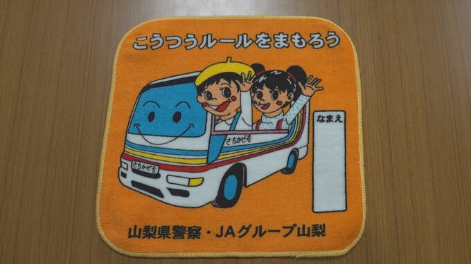ハンカチは今後県内の保育園と幼稚園、それに小学校で行われる交通安全教室で配布される予定です。