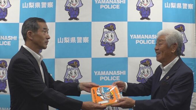 交通ルールを守るメッセージを載せた子ども用のミニハンカチ1万枚が県警本部に贈られました。