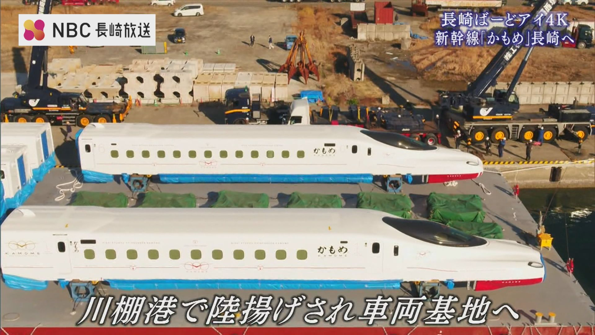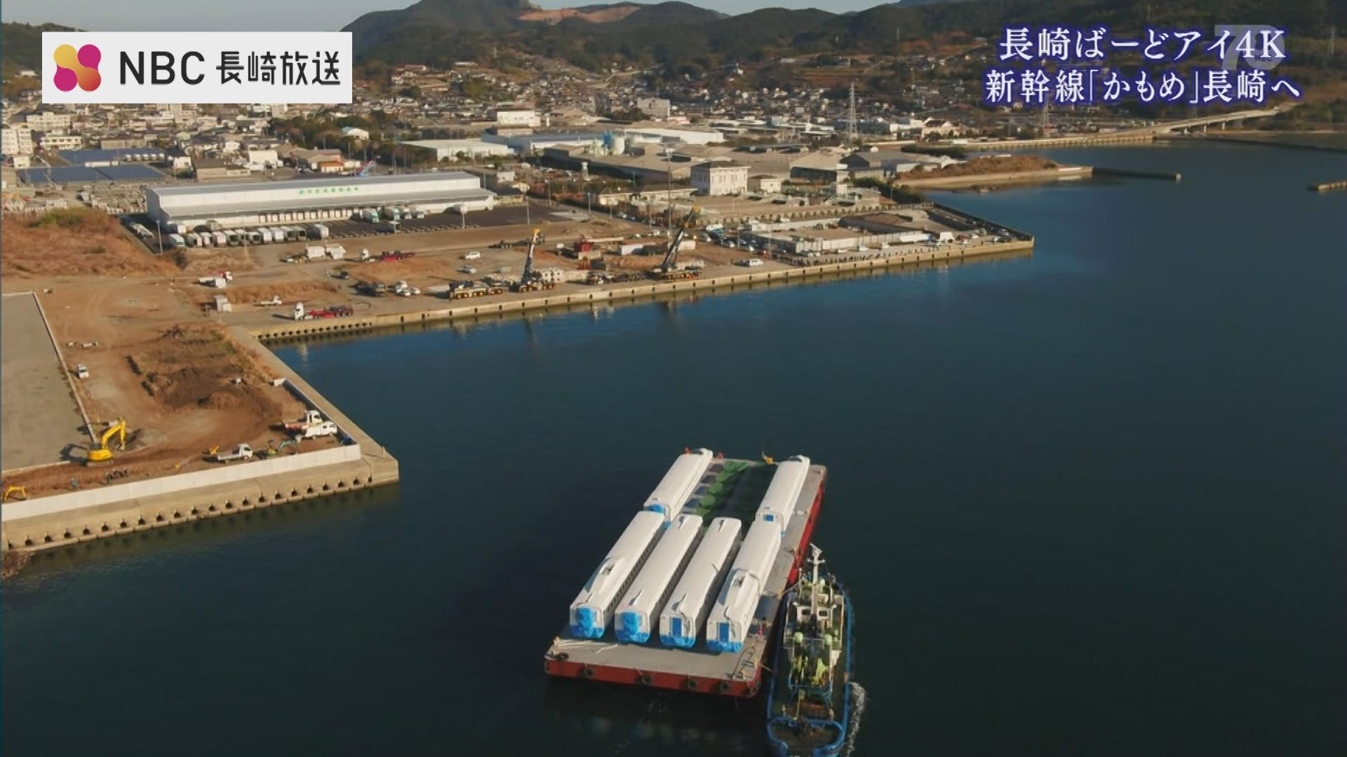 山口県下松市の日立製作所 笠戸事業所で製造されたかもめの新車両(N700S)は、海路と陸路で長崎県に輸送されました。