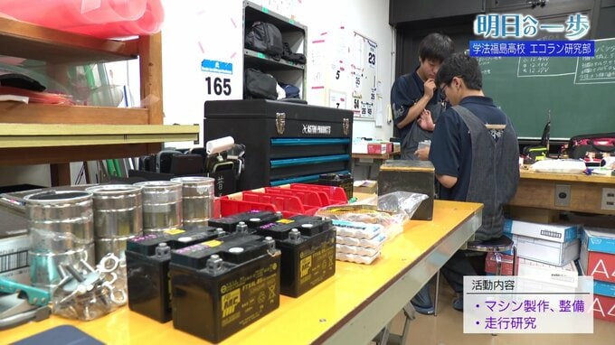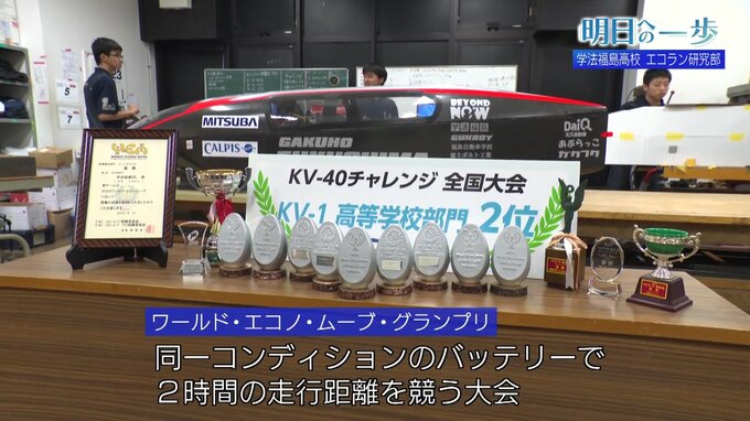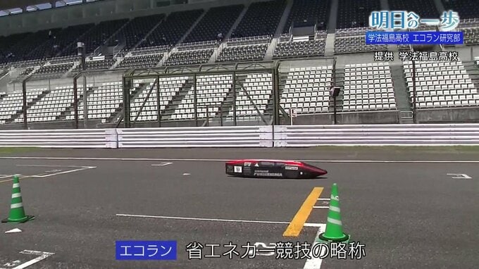 学法福島「エコラン研究部」は、このエコランの強豪校。「ワールド・エコノ・ムーブ・グランプリ」バッテリー部門では、高校生クラス2連覇を果たしました。