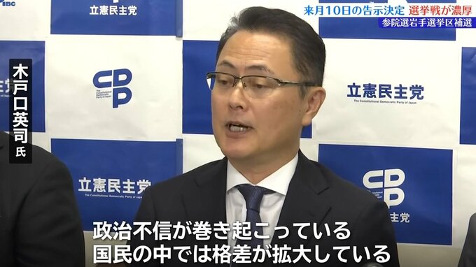 立憲民主党岩手県連は9月7日、補選の候補者として元職の木戸口英司氏の擁立を決め、10日党本部が公認を決定しました。