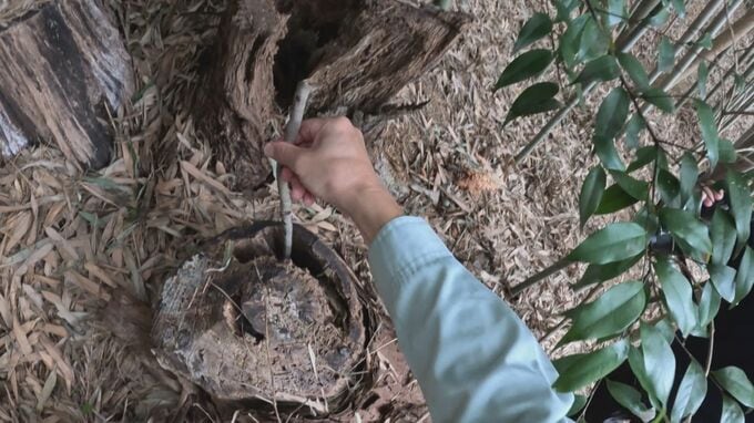 「腐っているし、穴が開いている。大体(切ってから)10~20年経つと、腐って空洞になる。雨がここから入って他よりも水が多く染み込んだ可能性がある」