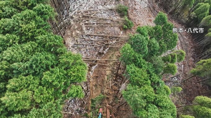 死者・行方不明者69人の熊本豪雨災害で、土砂崩れが起きた山は、重機を入れるために木を切り倒して作られた道が土砂崩れの起点の一つになっていました。