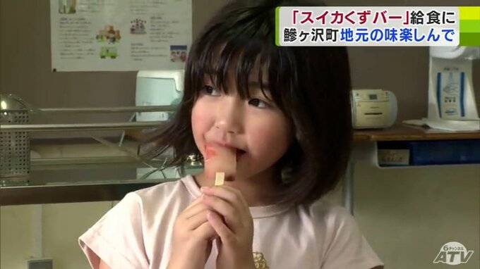 青森県鰺ヶ沢町の小中学校の給食に地元産のスイカを使った「アイス」が提供されました。「葛(くず)」を原料とした“溶けないアイス”に、児童たちは普段食べるスイカとは違った食感を楽しんでいました。鯵ヶ沢町…