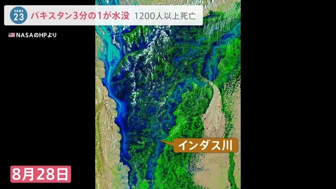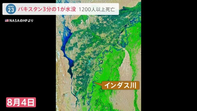 パキスタンを流れるインダス川の周辺は水に浸かり、巨大な湖のようになりました。