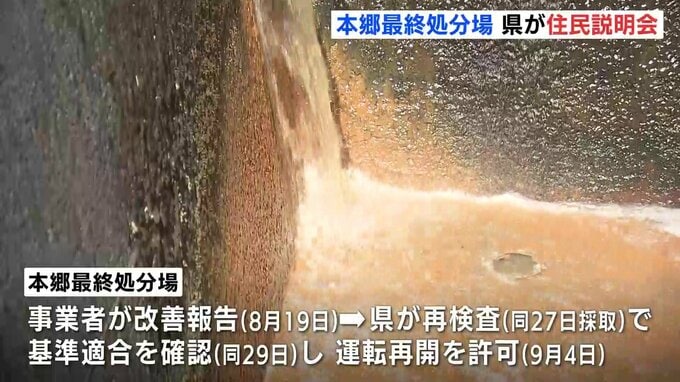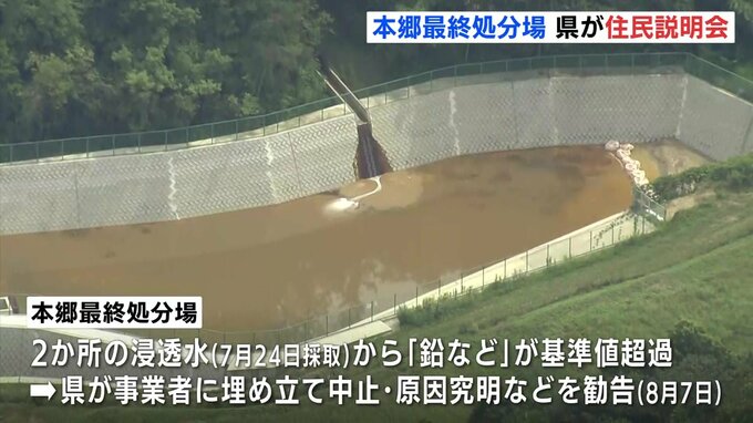 本郷最終処分場をめぐっては、浸透水から基準値を超える鉛などが検出されたとして、8月、県が事業者に埋め立て中止や原因究明などを求める勧告をしました。その後、改善されたとして9月4日に再開を認めています。