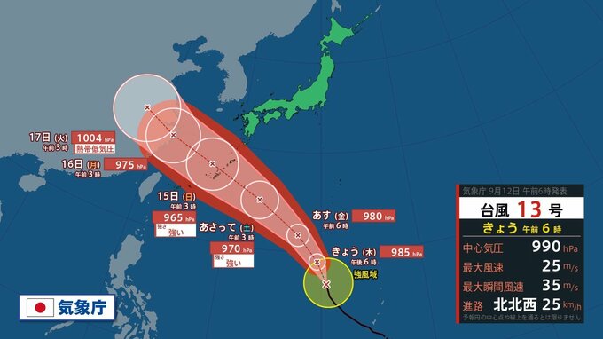 台風13号は強い勢力で沖縄方面へ その”次の台風の卵”発生か
