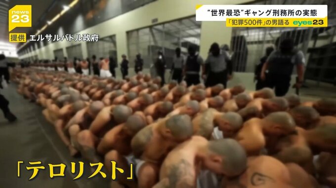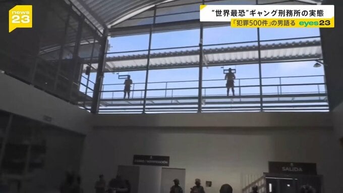 政府は、ギャングを「テロリスト」と定義し、丸刈りにされた受刑者たちは原則として24時間365日、この建物の中で過ごします。