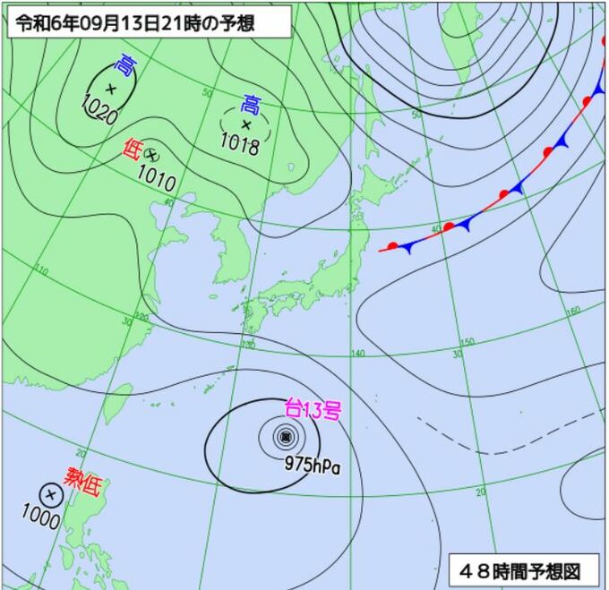 「台風13号 バビンカ」当初の予想より発達か…最大瞬間風速「50メートル」965hPa予想 3連休に「強い」勢力で沖縄直撃のおそれ 「大荒れ」「大雨」「大しけ」となる可能性 山陰放送 2024年9月12日(木) 10:11 国内 気象庁HPより 気象庁HPより