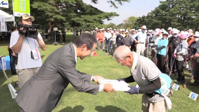 会場となった花巻市の運動公園には、予選を勝ち抜いた36チーム216人の選手が集まり、男女それぞれの最高齢となる93歳の男性と91歳の女性に記念品が手渡されました。