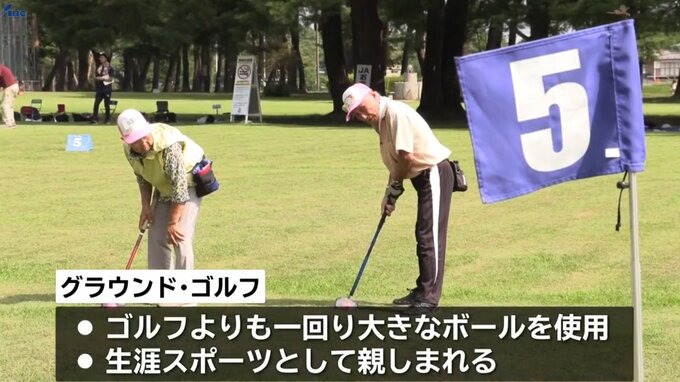 グラウンド・ゴルフはゴルフボールよりも1回り大きなボールを使用するため、高齢者でもプレーしやすく生涯スポーツとして親しまれています。