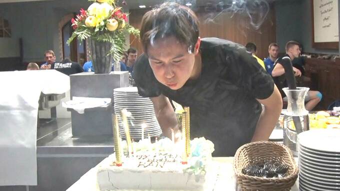 夕飯時には現地時間の2日に、21歳の誕生日を迎えた髙橋藍(21)を祝うためバースデーケーキが用意された。髙橋は「20歳と気持ちは変わらない。自分自身がどれだけ強くなれるか、21歳、世界選手権後も自分自身の努力を忘れずレベルアップしたい」と話した。また21歳になってやりたいことに「車の免許を取りたい。ドライブが好き。音楽を聴きながらドライブとかしてみたい。少し離れたところへ旅行に行ったりとか、日本の色々なところに行きたい。自分は関西出身なので、まずは名古屋。大阪も近いですけど、そこまで行ったことがないので、自分が運転してUSJに行くとか、そういうことをしたいなと思っています」と抱負を語った。