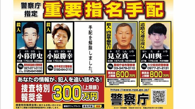 捜査特別報奨金は、指名手配中の容疑者逮捕に結びつく情報を提供した人に支払われるもので、上限額は300万円です。