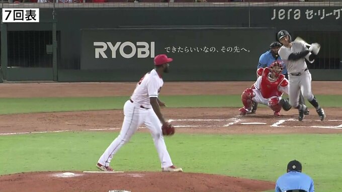 7回からはハーンがマウンドへ。先頭打者の出塁を許すも、サード・小園が難しい打球処理から5ー4ー3のダブルプレー。