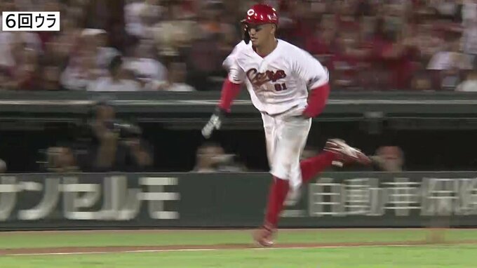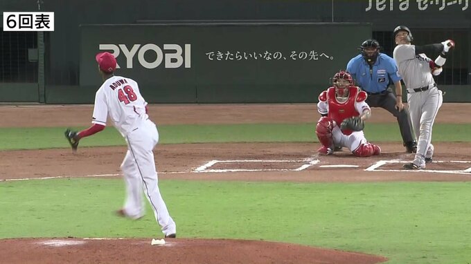 6回ウラ、カープは、再び3番・4番のコンビで試合を動かします。1アウト・ランナー一塁で3番・小園が、力のあるストレートに負けることなく引っ張り、三塁・一塁とチャンスを広げます。