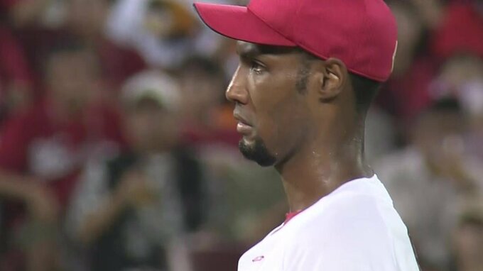 前回登板に続きイニングをまたいだハーンは。ライト・末包昇大 のナイスプレーもあり、8回も無失点に抑え、2対0のまま最終回を迎えます。