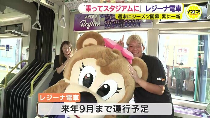サンフレッチェ広島レジーナを応援する電車が12日、お披露目されました。