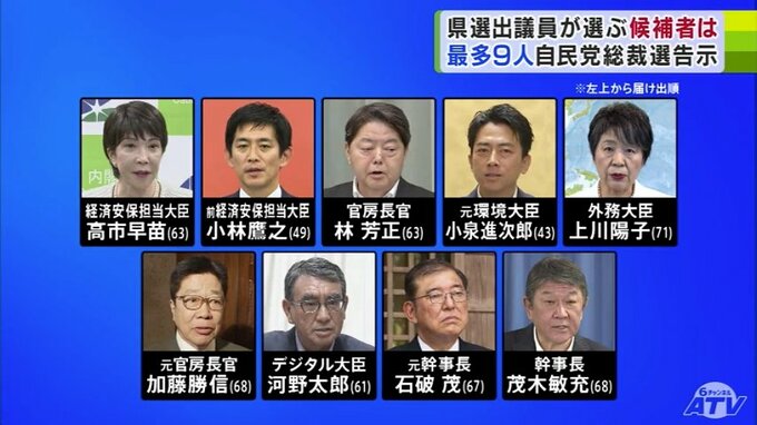事実上、次の総理大臣を決める自民党の総裁選が12日に告示されました。今の制度になってから最も多い9人の候補による選挙戦が確定するなか、青森県内の自民党国会議員の態度も様々です。