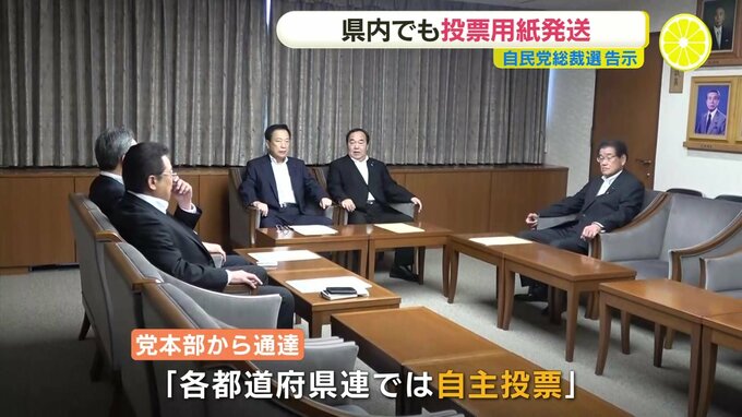 県連では9日、総裁選の管理委員会を開き、事務手続きなどを確認しました。党本部から先月、「各都道府県連では自主投票とする」とあらためて通達があったということです。