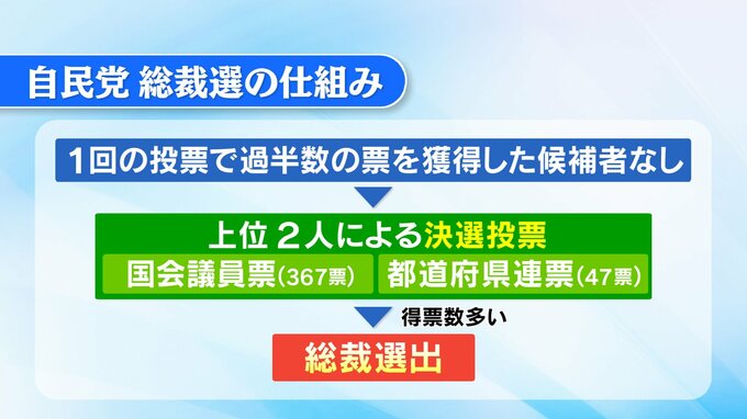 決選投票で得票数が多かった候補者が当選、新総裁となります。