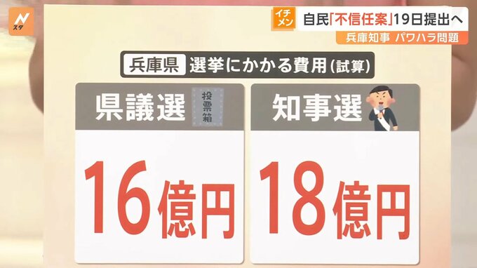 ただ、どちらもお金がかかります。県議選では16億円、知事選では18億円で、双方行うと34億円という金銭的な負担があるわけです。
