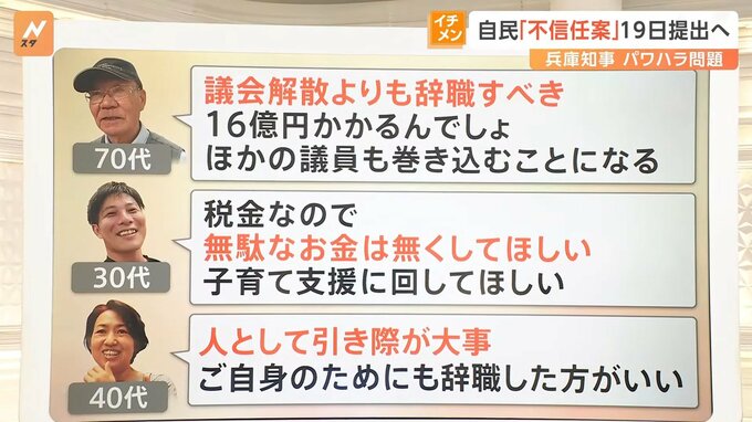 「議会解散よりも辞職すべき。16億円かかるんでしょ。ほかの議員も巻き込むことになる」